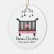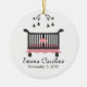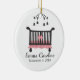 Cuna elegante de color negro con tostada y ropa de cama rosa. Agregue el nombre y la fecha de nacimiento de los recién nacidos. Perfecto para regalos de vacaciones o mandar como anuncio de nacimiento. Recuerda añadir una foto de tu pequeño en la parte posterior del adorno.