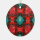 This stunning ceramic Christmas ornament features a vibrant, festive kaleidoscope design in rich reds and deep teal with gold accents, reminiscent of stained glass or gemstones. It's decorated with classic holiday sentiments: "Believe," "Merry & Bright," "Joy to the World," and "Together Always." Perfect as a treasured keepsake, a gift for family or friends, or a beautiful addition to your own tree. Its unique jeweled, abstract pattern makes it stand out.