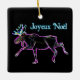Representación brillante, como un neón, de un alce de toro sobre un fondo negro. La lectura francesa de texto "Joyeux Noё l" aparece en azul y blanco resplandeciente.