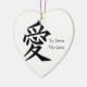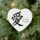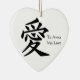 El regalo perfecto para el El día de San Valentín, el Día del Navidad, el Año Nuevo chino o un cumpleaños, nuestro adorno en forma de corazón presenta la caligrafía kanji para el "amor". Añade tu propio texto delante o atrás, también.