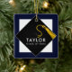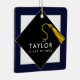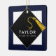 Captura de graduación negra clásica y diseño de tacel dorado sobre fondo azul marino. Editar texto para añadir el nombre del graduado y el año de clase superior.