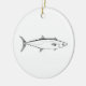 Este adorno vintage de pesca de agua salada representa una caballa rey. Este lustroso pescado de agua salada es más grande que sus parientes cercanos, el Cero y la caballa española. Grandes reyes, conocidos como "fumadores", son capturados por deportistas a lo largo del Atlántico Sur y el Golfo de México.