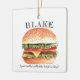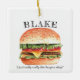 Los Navidades perfectos obsequios y gustos para los amantes de las hamburguesas. Nuestros adornos personalizados de Navidad incluyen su nombre, un ilustracion jugoso de hamburguesa, citas divertidas y patrones coincidentes en la parte trasera.
