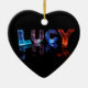 Esta imagen es una fotografía de las letras hechas a mano, que cambian aleatoriamente, produciendo modelos y colores únicos de la luz. El nombre Lucy se refleja en agua inmóvil, con hexágonos flotantes del efecto metalizado. Las letras miran como si se tallen del hielo o del cristal crackled. Si usted no puede encontrar un nombre que usted quiere, satisfaga consiguen en tacto, y lo pondré en mi lista. Vea por favor NamesInLights.co.uk para ejemplos más grandes del estándar de la fotografía en estos productos.