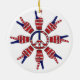 Dos señales de paz tradicionales dispuestas en forma de copo de nieve. Colores de marca con el color de fondo elegido.