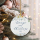 Este adorable adorno de la "Primera Navidad de Bump" es una manera adorable de celebrar a su bebé. Presenta una acuarela floral con arándanos y caligrafía moderna. Fácilmente personalizable con el año. El diseño es el mismo en la parte delantera y trasera del adorno. ¡Hace un gran regalo de Navidad para los padres que esperan!