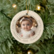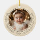 El primer champán navideño de bebé, oro moderno de dos fotos recién nacidos. El adorno cerámico muestra maravillosamente dos preciosas fotos de tu recién nacido, una a cada lado del adorno. El color de fondo es el oro del champán. Alrededor de cada foto hay una línea de círculo delicada, con un texto negro personalizado que dice: "Mi primera Navidad - Año - Nombre del bebé", lo que lo convierte en un recuerdo eterno para los nuevos padres que celebran este hito especial. Una manera cuidadosa de conmemorar la primera temporada de vacaciones de su bebé, este adorno es perfecto para exhibiciones familiares o regalos a los abuelos. Añada las fotos, el nombre y el año especial de su bebé seleccionando "Personalizar esta plantilla" para un mantenimiento de vacaciones verdaderamente único. Para obtener más opciones de personalización, haga clic en "Editar usando la herramienta de diseño" para ajustar colores o tipos de letra para que coincidan con su decoración de vacaciones.