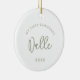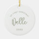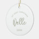 My First Chrismtas: adorno de hito del bebé con una foto, con una moderna tipografía verde salada.
