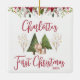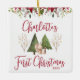 Este hermoso ornamento de la Primera Navidad del Bebé presenta un diseño clásico con un conejito dulce delante de árboles navideños decorados y acentuado con una florida roja y verde. La Primera Navidad del Bebé está escrita en caligrafía moderna e incluye el año. Personalice con el nombre y año de su hijo. El diseño es el mismo en la parte delantera y trasera del adorno. ¡Perfecto para tu pequeño nuevo!