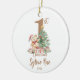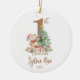 Celebra el hito de tu pequeña con nuestro Ornamento Personalizado de Primera Navidad, con un adorable oso de peluche rodeado de regalos festivos y un lindo árbol de Navidad. Este adorno bellamente diseñado está diseñado para conmemorar la primera Navidad de su bebé, con un gran número uno personalizado y una cita llamativa. Haga que estos Navidades sean inolvidables al capturar la alegría de la primera temporada de vacaciones de su bebé con este delicioso adorno.