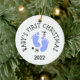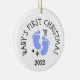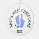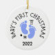 Una bonita decoración de árbol de cerámica con los pies de un bebé azul es el lugar perfecto para las vacaciones de los nuevos padres y familiares. Personalizar de la fecha