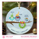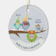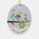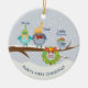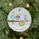 Crea un preciado recuerdo con este adorno personalizado de Navidad para el primer bebé que presenta una ilustración adorable de una familia de pájaros que llevan sombreros y bufandas de invierno acogedoras sentados en una rama cubierta de nieve que está adornada con una guirnalda festiva. La delicada nieve que cae añade un toque de magia a la escena. Personalice el frente del adorno con su propio texto para marcar "El primer Navidad del bebé", junto con el año actual, y espacio para agregar los nombres de sus seres queridos.