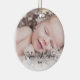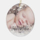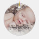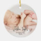 Aprecie sus primeros recuerdos con su bebé con este adorable adorno navideño. El diseño simple presenta "La primera Navidad del bebé" en un alfabeto moderno en el frente con el nombre de su bebé y las estadísticas de nacimiento en la parte posterior. Personaliza tus fotos. Este adorno será un placer para siempre.