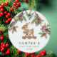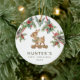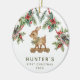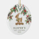 Celebra la primera Navidad de tu bebé con nuestro encantador adorno navideño personalizado con un adorable juguete de arrastre de renos. Este encantador rincón está adornado con hermosos pinares verdes y hojas huecas, lo que lo convierte en un complemento perfecto para su decoración de vacaciones. Personalizar con el nombre de su hijo y el año para crear un recuerdo atesorado que será apreciado en los años venideros.
