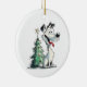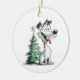 Perro desinfectado lindo con un árbol de Navidad, feliz de ser adoptado, en un adorno de cerámica que conmemora la primera Navidad en una casa futura. El texto de la parte posterior puede cambiarse. Gráfico asistido por IA adquirido con licencia comercial. Pintura: PaintPixelCo