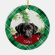 Adorno De Cerámica La primera Navidad personalizada del labrador negr