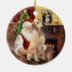 Santa en casa relajándose frente a un fuego acogedor con su Labrador Recuperador amarillo antes de la gran noche. (Noten a Mona Lisa colgando del manto.)