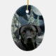 Nuevo labrador negro en vacaciones nevadas o adorno de fondo de Navidades