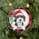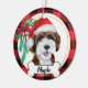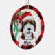 Este adorno de doodle de chocolate y blanco con fondo de búfalo rojo y Navidades garland and bow - ¡El arte fue pintado a mano por mí y puesto a disposición como este adorable adorno! Añada cualquier texto (sugerido: "❤️ mi garabato" o su nombre de maleza) visite www.curella.net para ver un retrato personalizado, pegatinas y más.
