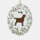 Adorno de Labrador Chocolate para las fiestas en un bonito diseño de corona. Personaliza con nombre y año. DERECHOS DE AUTOR © 2020 Judy Burrows, Black Dog Art - Todos los derechos reservados