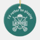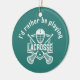 Lacrosse Design Ceramic Ornament with customizable text and hat color.