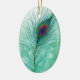 Plumas de pavo real dibujadas a mano, adorno de Navidad verde azulado, turquesa, morado y azul. En la parte posterior puede cambiar el texto para decir lo que quiera.