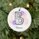 Adorno De Cerámica Letra acuarela B con flores moradas