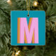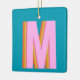 Letra de monograma audaz de tipografía retro personalizada en ornamento azul de Navidad