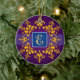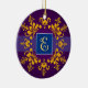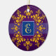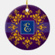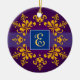 Diseño ordenado que exhibe una letra dorada E rodeada de intrincados patrones barrocos.