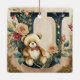 Adorno De Cerámica Letra FLoral Teddy Bear U