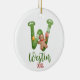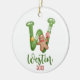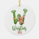 Letra grande, nombre y fecha ornamento cerámico personalizado. La letra W con un hombre de abalorio con un Lollipop, una estrella amarilla y un nombre y fecha de copos de nieve se personaliza fácilmente con las herramientas de diseño Zazzles.