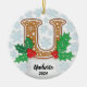 Adorno De Cerámica Letra U Nombre personalizado Monograma Navidad