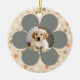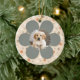 Muestre un recuerdo favorito con esta encantadora plantilla de adorno de una sola foto. Su imagen toma el centro del escenario dentro de un diseño de flor moderno y lindo con pétalos grises. El fondo cálido y neutral está decorado con un dulce patrón de pequeñas margaritas, creando un hermoso ambiente de granja. Esta es una forma perfecta de crear un recuerdo de Navidad de una mascota querida, honrar a un amigo peludo con un tributo conmemorativo o celebrar cualquier momento especial. Es simple hacerlo suyo: simplemente cargue su mejor foto en la plantilla para crear un hermoso y sentido recuerdo.