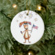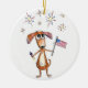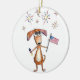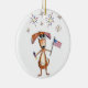Adorno De Cerámica Lindo perro patriótico caprichoso con bandera