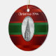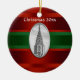 Línea aérea de la ciudad de Nueva York: Edificio Chrysler en blanco y negro - Ornamento de Navidad El horizonte de la ciudad de Nueva York presenta el icónico edificio Chrysler en un marco de aspecto plateado contra un fondo de gradiente rojo profundo con una cinta verde festiva. Todos los derechos reservados