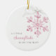 Celebrate the arrival of your baby girl with this elegant winter-themed ornament. Featuring a delicate, watercolor snowflake in cute pink hues, this charming design perfectly captures the essence of a winter wonderland.