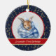 Esta encantadora cría de renos está envuelta y envuelta en una manta de manta azul y blanca. La imagen de una acuarela falsa está bordeada por un rojo intenso y rodeada de estrellas de la marina y del oro. Hacia el fondo, un profundo borde rojo y dorado muestra el nombre de tu hijo o bebé favorito y la primera Navidad. Puedes editar el texto como quieras, como decir Ten un Navidad acogedor o Feliz Navidad, etc.