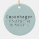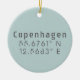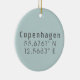 Ornamento cerámico con Copenhague Coordenadas de mapa de latitud y longitud de Dinamarca en letra urbana moderna