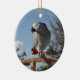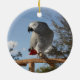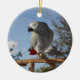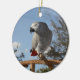 Gris africano bonito en un soporte del árbol con sus plumas grises bonitas y cola roja que miran sus alrededores al aire libre contra el cielo azul y los robles.