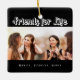 Un regalo para tu(s) mejor(s) amigo(s) por cumpleaños, Navidades o un evento especial. Texto en blanco: Amigos por la vida, escrito con un guión a la moda. Personaliza y usa tu propia foto y nombres. Un fondo negro de moda.