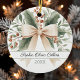 El primer Navidad de un bebé rústico, acuarela beige de color beige cerámico Ornament capta el encanto de la primera temporada de vacaciones de un recién nacido. En la parte delantera se ve un delicado arco beige con hojas verdes y bayas de terracota sobre un fondo blanco. Debajo de la proa, un año personalizado y el nombre de su bebé en un guión elegante lo hacen único suyo. La parte de atrás está escrita con un dulce mensaje: "La magia de los Navidades comienza contigo, nuestra pequeña". Con un toque final, "con amor, mamá y papá". Ideal para que los padres regalen a sus preciados hijos, este sake añade calidez y sentimiento a cualquier exhibición navideña, haciendo que cada Navidad sea más memorable. Haga clic en "Personalizar esta plantilla" para agregar el año, el nombre de su hijo o un mensaje especial, creando un tesoro único para vacaciones. Contenido generativo
