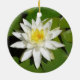 Ornamento cerámico redondo con una imagen, a ambos lados, de una pintura acuarela de un realismo extremo de una flor de loto blanco espectacular. El loto blanco representa el estado de perfección espiritual y pureza mental total (bodhi). Vea toda la colección de ornamentos de flores y plantas en la sección HOME.