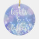 NewParkLane - Glamoroso ornamento Hanukkah, con brillo azul, luces brillantes y divertida cita 'luces y lazos' en una tipografía de escritura. Este diseño también está disponible en tarjetas y postales.