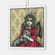 Red Lucia y Cat (uno de los 6 diseños) de la serie "Vacaciones del Gótico pop" del artista estadounidense Dean A. Kendrick. 2.75" x 2.75" de porcelana blanca adorno de Navidad de cerámica. Asombroso, extraño, festivo y letal diversión para los gustos del gótico o del steampunk. ¡Que estos Navidades sean oscuros y psicodélicos!