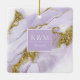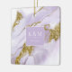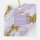Este diseño a medida, con una tinta de alcohol abstracta en tonos de lavanda suave a violeta lila con acentos dorados brillantes, es perfecto para una boda romántica y elegante. El diseño de ornamento de coordinación que se muestra aquí proporciona una plantilla para agregar fácilmente sus iniciales y fecha de boda. Buscar ID990 para ver otras piezas en este conjunto de bodas coordinado.