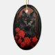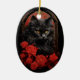 Black Maine Coon cat con flores rojas estilo Art Nouveau