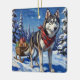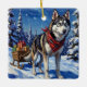 Adorno De Cerámica Majestic Siberian Husky Pulling Christmas Sled