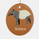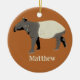 This holiday ornament is ready to be personalized with your own custom text. You can add a name (or any other text) to the front and a message or date to the back. The ornament features my realistic style illustration of a Malayan or Asian tapir in charcoal gray and cream against a cinnamon or copper orange colored background.