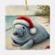 Adorno De Cerámica Manatee personalizado con Santa Hat