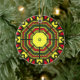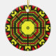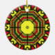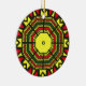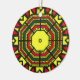 Se creó un ornamento redondo geométrico afrocéntrico utilizando marcadores mágicos negros, rojos, amarillos y verdes y una aplicación para el iPad de caleidoscopio Por https://www.zazzle.com/store/celestesheffey